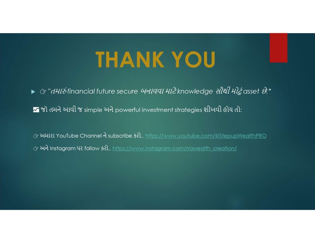 • આ અમારી મ્યુચ્યુઅલ ફંડની યુટ્યુબ અને ઇન્સ્ટાગ્રામની ચૅનલ છે, તો પ્લીઝ સબ્સક્રાઇબ અને ફોલો કરી દેજો ને ….. બને માટે લિંક નીચે આપી છે